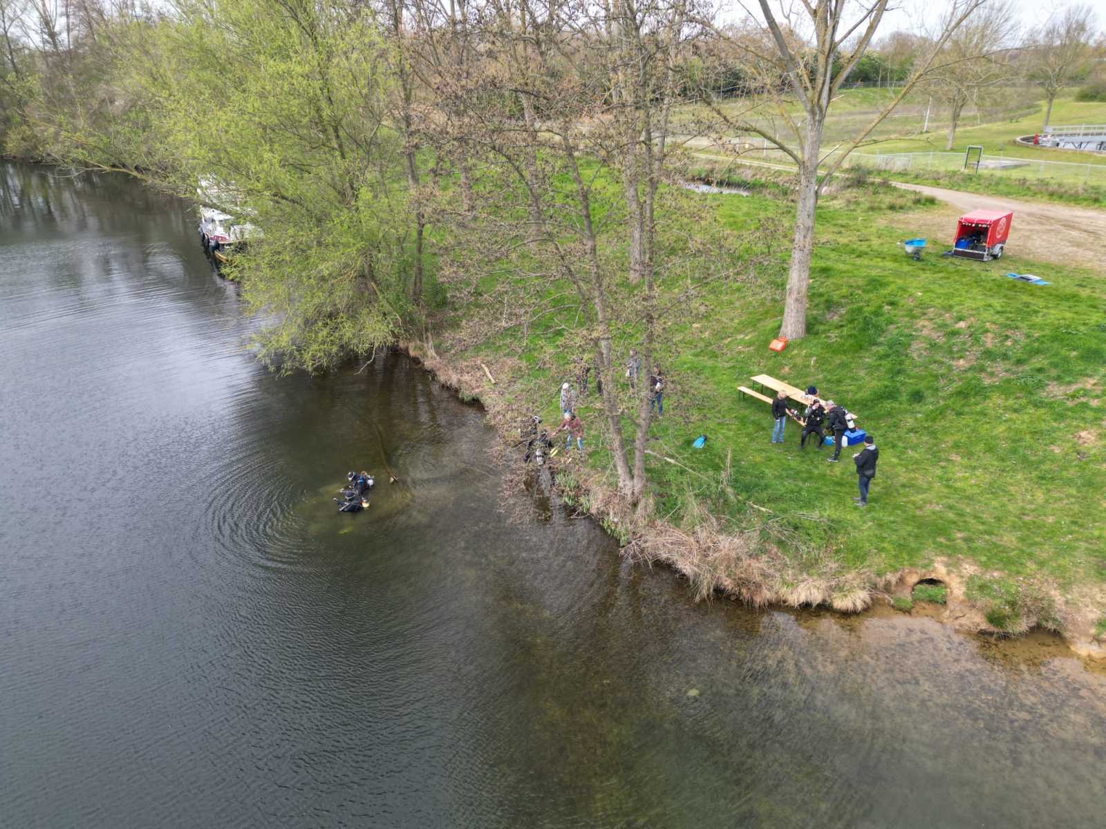 Na het omkleden trotseerden maar liefst zes fanatieke duikers het water, aangemoedigd door een groep van ongeveer zes toeschouwers langs de kant. De omstandigheden waren typisch voor de tijd van het jaar: een stevige wind, een watertemperatuur van zo’n 10 graden en een zicht van circa 5 meter. Geen tropische duik, maar juist dat maakt de paasduik zo bijzonder!